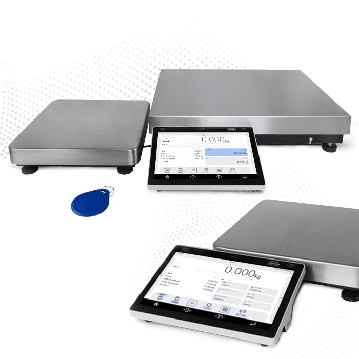 Balanța este echipată cu ecran tactil color de 7”, care permite configurarea interfeței prin widget-uri și afișarea informațiilor relevante direct pe ecranul principal. Funcția de operare fără atingere, realizată prin senzori IR, permite utilizarea balanței în condiții de lucru sterile sau atunci când se dorește limitarea contactului direct cu suprafețele.