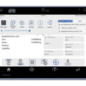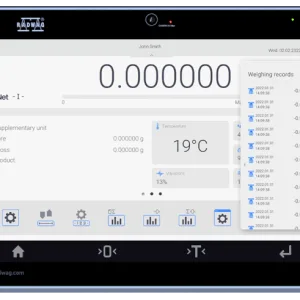 Auditor digital de cântărire Asigură că balanța este pregătită pentru utilizare. Permite compensarea în timp real a flotabilității aerului. În plus, informează despre necesitatea unei inspecții a balanței sau a unui audit periodic al acurateței și sensib