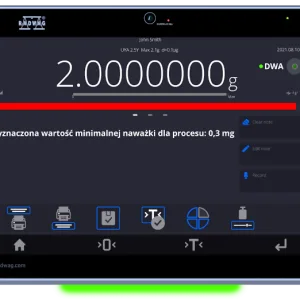 Asigură că balanța este pregătită pentru utilizare. Permite compensarea în timp real a flotabilității aerului. În plus, informează despre necesitatea unei inspecții a balanței sau a unui audit periodic al acurateței și sensibilității balanței.