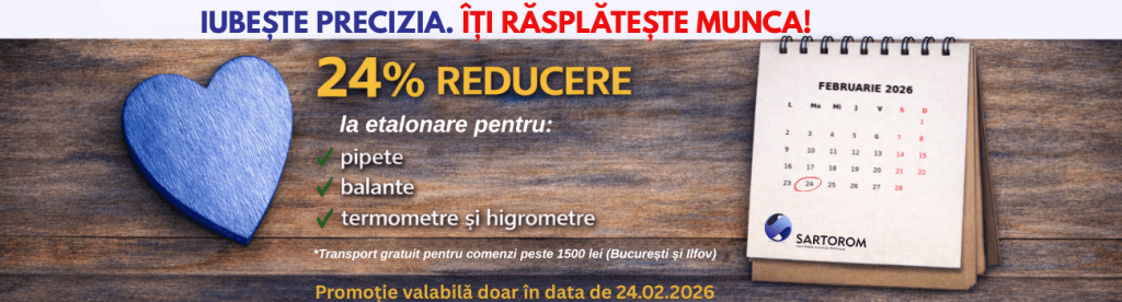 Etalonările sunt efectuate în laboratoarele Sartorom, în condiții controlate, cu respectarea cerințelor standardului SR EN ISO/CEI 17025:2018 și cu trasabilitate completă a rezultatelor.